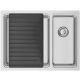 La cubeta y media cubeta Rodi UNA 55 de acero inoxidable tiene una medida exterior de 580x440 cm. La medida de las cubetas interiores es de 340x400 mm. + 180x400 mm. con radio R25. La cuba grande dispone de un rebaje de 2 cm. hasta los 38 cm., donde se monta la tabla de corte "versus" incluida. La cubeta tiene una profundidad de 20 cm.