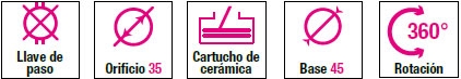 - Instalación: Requiere orificio 35 mm. en fregadero o bancada.